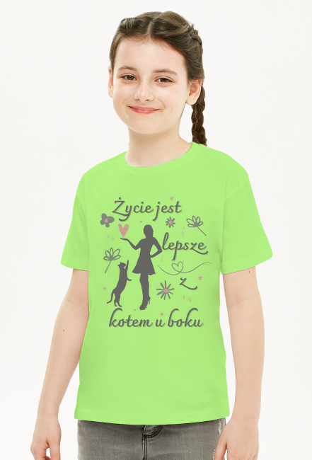 Koszulka Dla Dziewczynki z grafiką "Życie z kotem - inspirująca grafika z cytatem i miłością do zwierząt" SKU: koszulka-dziewczynka-new_7pb1ffiw_4783211
