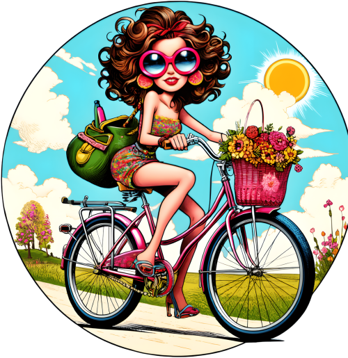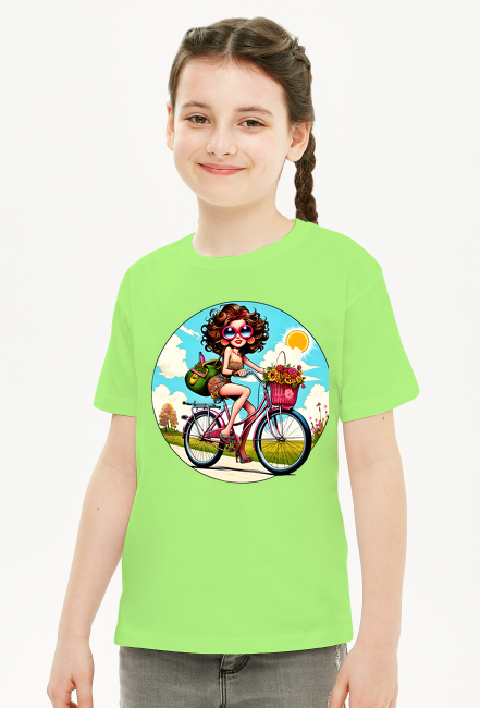 Koszulka Dziecięca Unisex z Epickim Nadrukiem "Stylowa dziewczyna na rowerze w stylu retro z koszem pełnym kwiatów" – idealna na każdą okazję SKU: koszulka-dziewczynka-new_n4t2fmbc_4775685
