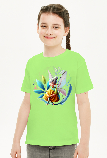Koszulka Dziecięca z Nadrukiem "Zamyślona Wróżka w Ogrodzie" - Wysokiej Jakości T-shirt Unisex dla Dzieci SKU: koszulka-dziewczynka-new_pso5iou3_4775436