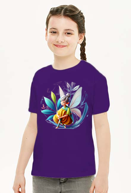 Kup teraz i wprowadź magię do garderoby swojego dziecka dzięki koszulce z unikalnym nadrukiem "Zamyślona Wróżka w Ogrodzie"!