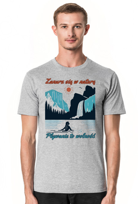 Odkryj koszulkę męską "Pływanie to wolność - Unikalny projekt inspirowany przygodą i relaksem na łonie natury", która łączy w sobie ducha natury, pływania i relaksu. Ta koszulka to doskonały wybór dla wszystkich, którzy cenią sobie wolność i przygodę w otoczeniu przyrody. Grafika jest wysokiej rozdzielczości, co gwarantuje doskonałą jakość druku, ostre detale i żywe kolory.