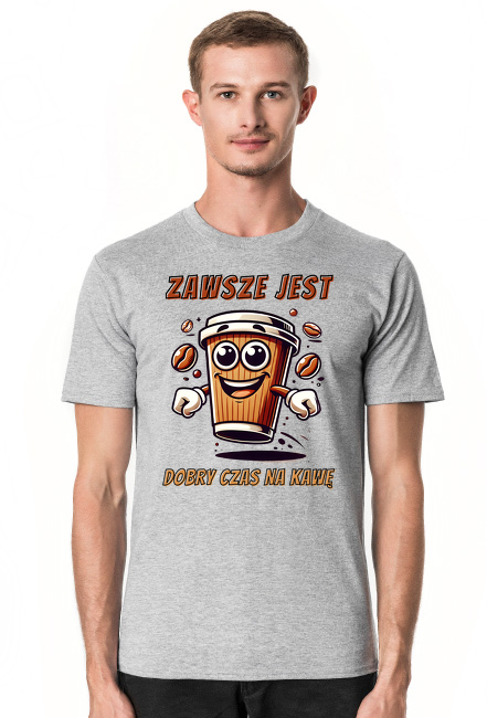 Grafika jest wykonana w wysokiej rozdzielczości, co gwarantuje jej doskonałą jakość na koszulce. Wesoła filiżanka z dynamicznym hasłem "Zawsze jest dobry czas na kawę" to idealny sposób, aby wyrazić swoją miłość do kawy. To nie tylko odzież, ale także sposób na przekazanie swojego stylu i osobowości.