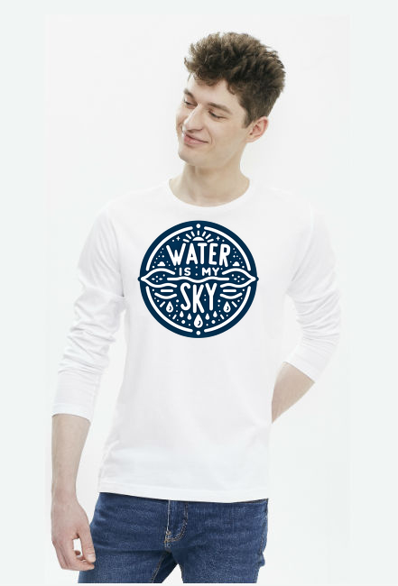 Wzbogać swoją garderobę o męską koszulkę z długim rękawem z wyjątkowym wzorem "Eteryczna Esencja: Połączenie Wody i Nieba w Artystycznej Grafice". Ta artystyczna grafika to prawdziwa uczta dla oka, łącząca elementy ekologii, wodnego świata i wizualnej harmonii.