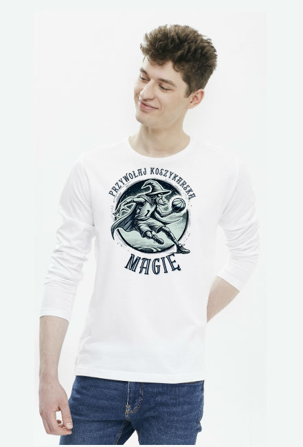 Męska Koszulka z Długim Rękawem - Przywołaj koszykarską magię - grafika z czarodziejem grającym w koszykówkę SKU: premium-longsleeve-voyage_ds1jz1pl_4779320