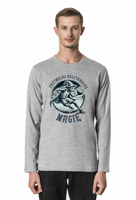 Męska Koszulka z Długim Rękawem - Przywołaj koszykarską magię - grafika z czarodziejem grającym w koszykówkę SKU: premium-longsleeve-voyage_ds1jz1pl_4779320