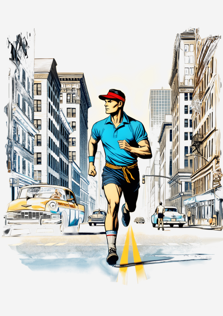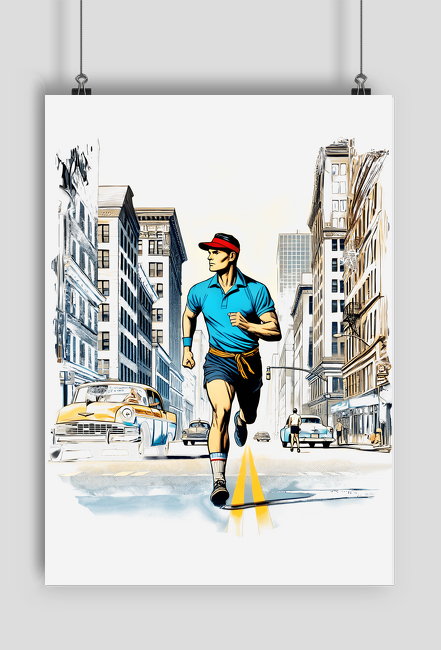 Plakat A2 Pionowy - Bieg przez miasto w stylu retro: Energia i Determinacja w ulicznym chaosie SKU: plakat-pion_3tz61rp6_4779749