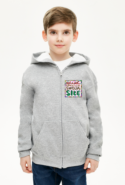 Rozpinana Bluza z Kapturem Dla Chłopców - Inspirujący cytat o odkrywaniu swojej siły poprzez bieganie - kolorowa grafika motywacyjna SKU: ch-opi-ca-bluza-z-kapturem-na-zamek_7vjnqcjy_4777791