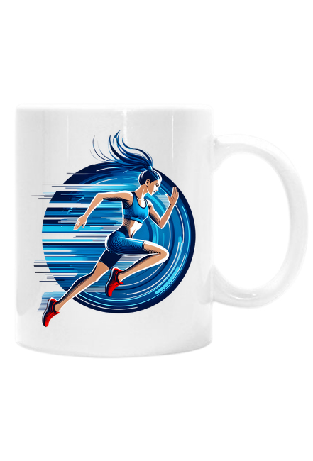 Szybkość i energia – KLASYCZNY KUBEK biały, porcelanowy 330 ml z dynamiczną grafiką biegaczki, idealny na prezent SKU: kubek_7xybpccb_4775121
