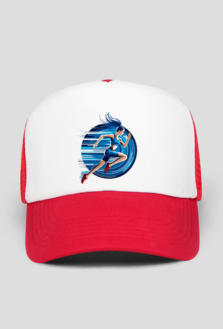Szybkość i energia – stylowa czapka z daszkiem typu TRUCKER z dynamiczną grafiką biegaczki, idealna na trening i codzienną aktywność SKU: czapka-z-daszkiem-trucker_5itq14zb_4775122