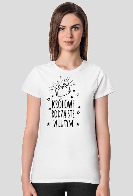 Koszulka urodzinowa - królowe rodzą się w lutym - koszulka z nadrukiem, z koroną i napisem "królowe rodzą się w lutym". Doskonały prezent na urodziny w lutym. Personalizowany nadruk nadaje koszulce podwójną wartość. Polecamy damską koszulkę jako idealny prezent urodzinowy.