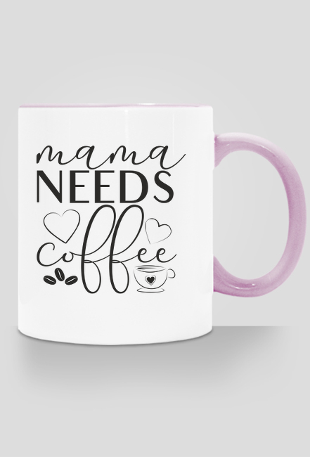 Mama needs coffee - mama potrzebuje kawy - kubek z kolorowym uchem dla mamy. Super prezent na Dzień Mamy i na inne okazje dla mamy. Wiadomo, że każda mama potrzebuje kawy! Kubek z napisem "mama needs coffee" przypadnie do gustu każdej mamie! Polecamy!
