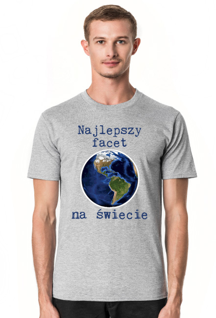 Super koszulka na Dzień Chłopaka - koszulka z nadrukiem kuli ziemskiej i napisem: najlepszy facet na świecie.