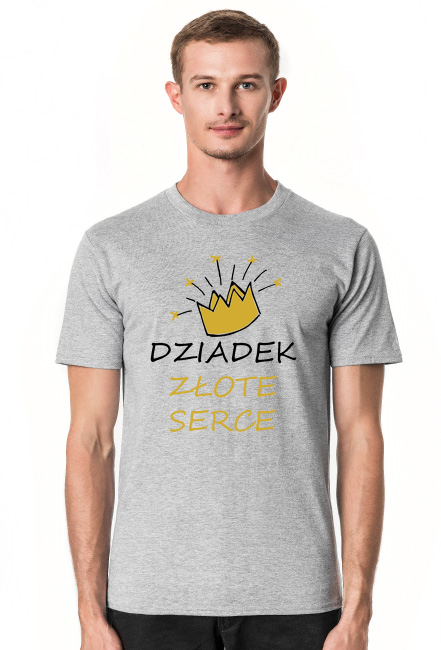 Koszulka z napisem "Dziadek Złote Serce". Koszulka kierowana specjalnie do waszych kochanych dziadków i z myślą o tym, by im sprawić radość i wywołać uśmiech na twarzy.
