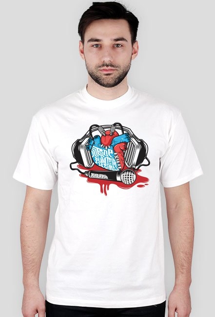 Nadruki wykonane w technologii DTG. Aby dłużej cieszyć się nadrukiem należy prać ręcznie i prasować na lewej stronie. Nie wybielać, nie gotować, nie podpalać, nie kopać, nie wrzucać do beczki z kwasem... nosić z dumą.
