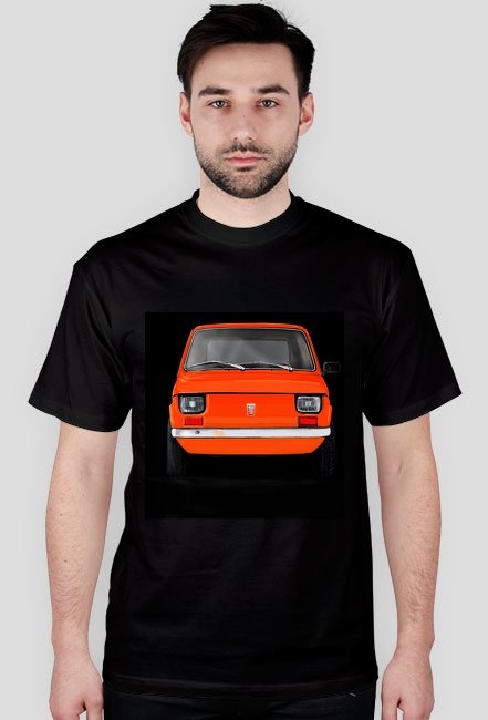 Koszulka z samochodem maly Fiat 126p 'maluch'. Koszulka z nadrukiem predstawiającym legendarny samochód Polski Fiat 126p, nazywany potocznie 'maluchem', 'malczanem', 'fiacikiem', 'kaszlakiem'. Maly Fiat byl produkowany w Polsce w latach 1973-2000 w Bielsku-Białej oraz w Tychach. W Polsce wyprodukowano ponad 3,3 miliona sztuk 'malego Fiata'. Dla znakomitej większości polaków mały Fiat był w latach PRL jednym z nielicznych dostępnych samochodów. To koszulka na cześć dzielnego 'maluszka'.