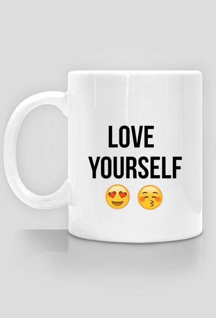 Kubek z nadrukiem Love Yourself emoji.