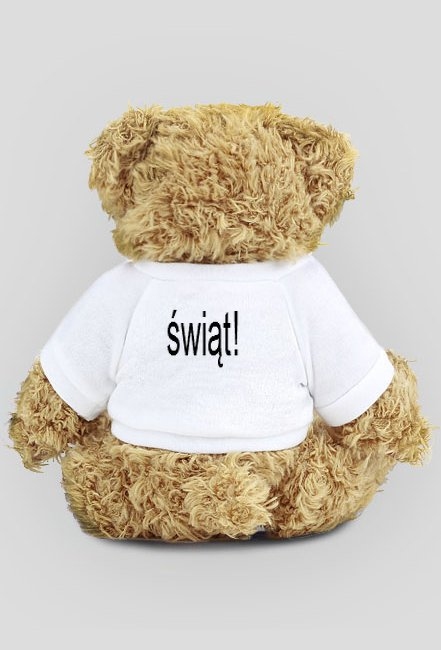 Opis: Miś pluszowy, wielkości około 25 cm, koszulka 100% bawełna nadruki na koszulce wielkości do 5 cm