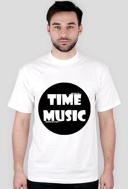 T-Shirt z nadrukiem Time Music w białej wersjii kolorysycznej.