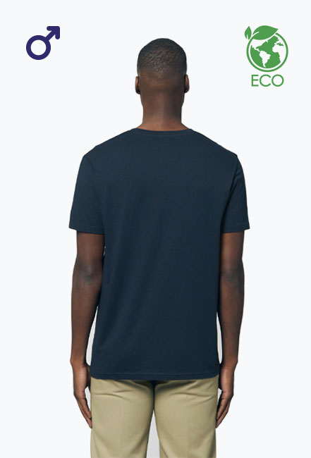 Męska koszulka z linii Eco Aware. Posiada wszywane rękawy, ściągacz na kołnierzyku oraz taśmę wzmacniającą na karku. Rękawy i dół z wąskim podwójnym ściegiem. Materiał: single jersey: 100% organiczna bawełna czesana ring spun. Gramatura 150 g/m². Posiada certyfikaty: GOTS (Global Organic Textile Standard), GRS, OCS, OEKO-TEX Standard 100, Fair Wear.