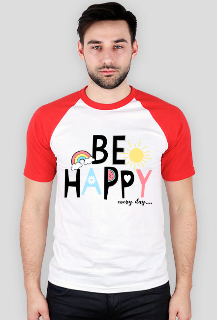 Koszulka baseball z nadrukiem BE HAPPY EVERY DAY.