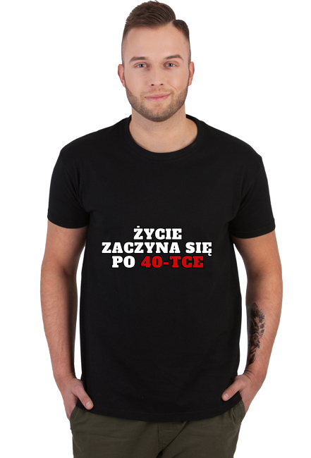 Koszulka męska "ŻYCIE ZACZYNA SIĘ PO 40-TCE" to idealny wybór na prezent, na zbliżające się 40-te urodziny!