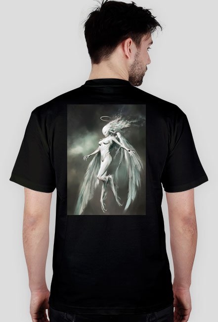 Model ma na sobie koszulkę w rozmiarze M. Maksymalne wymiary nadruku to 30cm (szerokość)