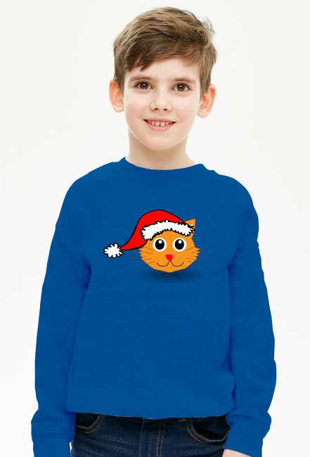 Kot w czapce mikołaja bluza bawełniana SKU: ch-opi-ca-bluza-bez-kaptura_briutez8_4316744