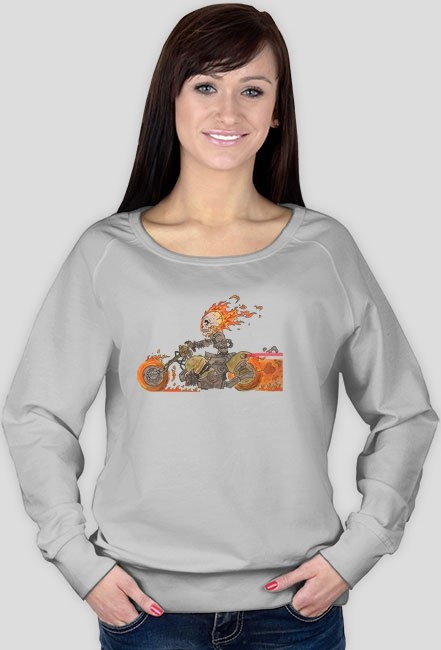 Modelka ma na sobie bluzę w rozmiarze S. Maksymalne wymiary nadruku to 30cm (szerokość)