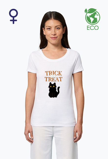 Koszulka damska eco Halloween Trick or Treat z kotem