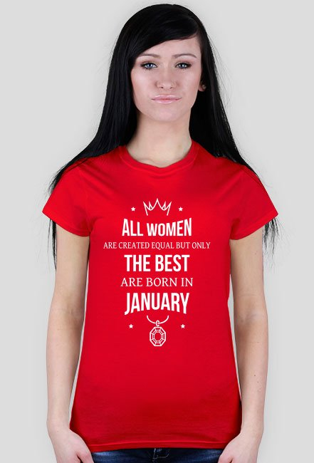 Wyróżnij się! Napis "ALL WOMEN ARE CREATED EQUAL BUT ONLY THE BEST ARE BORN IN JANUARY". Idealny prezent na każdą okazje dla wszystkich urodzonych w styczniu i to nie ważne czy dzień mamy, babci, siostry, córki, synowej, imieniny, urodziny, bądź walentynki. W końcu każda kobieta jest wyjątkowa! Wyraź to za pomocą tej grafiki :) Noś z dumą!