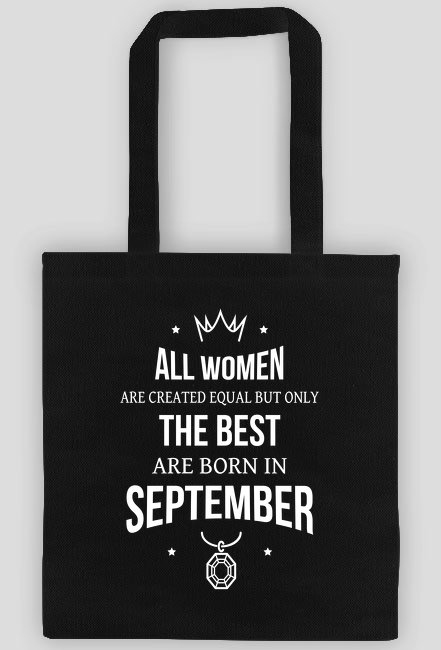 Wyróżnij się! Napis "ALL WOMEN ARE CREATED EQUAL BUT ONLY THE BEST ARE BORN IN SEPTEMBER".  Idealny prezent na każdą okazje dla wszystkich urodzonych w wrześniu i to nie ważne czy: dzień mamy, babci, siostry, córki, synowej, imieniny, urodziny, bądź walentynki. W końcu każda kobieta jest wyjątkowa! Wyraź to za pomocą tej grafiki :) Noś z dumą!