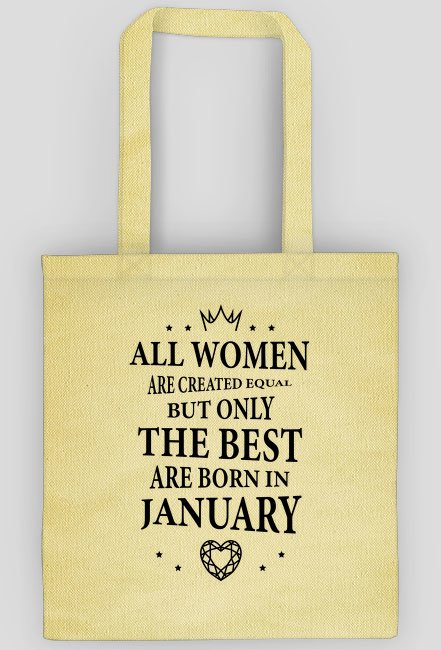 Wyróżnij się! Napis "ALL WOMEN ARE CREATED EQUAL BUT ONLY THE BEST ARE BORN IN JANUARY". Idealny prezent na każdą okazje dla wszystkich urodzonych w styczniu i to nie ważne czy: dzień mamy, babci, siostry, córki, synowej, imieniny, urodziny, bądź walentynki. W końcu każda kobieta jest wyjątkowa! Wyraź to za pomocą tego napisu... i noś z dumą! :)
