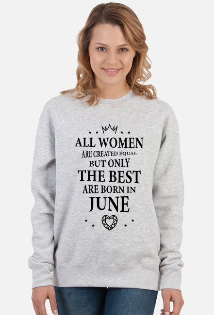 Wyróżnij się! Bluza z napisem "ALL WOMEN ARE CREATED EQUAL BUT ONLY THE BEST ARE BORN IN JUNE". Idealny prezent na każdą okazje dla wszystkich urodzonych w czerwcu i to nie ważne czy: dzień mamy, babci, siostry, córki, synowej, imieniny, urodziny, bądź walentynki. W końcu każda kobieta jest wyjątkowa! Wyraź to za pomocą tego napisu... i noś z dumą! :)