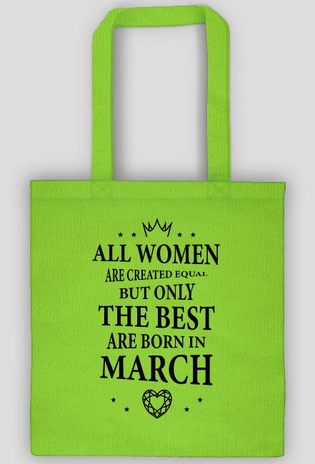 Wyróżnij się! Napis "ALL WOMEN ARE CREATED EQUAL BUT ONLY THE BEST ARE BORN IN MARCH". Idealny prezent na każdą okazje dla wszystkich urodzonych w marcu i to nie ważne czy: dzień mamy, babci, siostry, córki, synowej, imieniny, urodziny, bądź walentynki. W końcu każda kobieta jest wyjątkowa! Wyraź to za pomocą tego napisu... i noś z dumą! :)