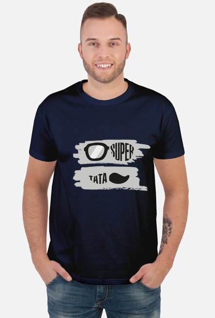 Wyróżnij się! Koszulka z napisem "SUPER TATA", oraz grafiką okularów i wąsów. Idealny prezent dla taty, zwłaszcza na urodziny, dzień ojca, imieniny, bądź po prostu by sprawić uśmiech! Doceń swojego tatę w zabawny sposób. Wyraź to za pomocą tego napisu... bo powaga powoli zabija! :)