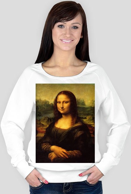 Modelka ma na sobie bluzę w rozmiarze S. Maksymalne wymiary nadruku to 30cm (szerokość)