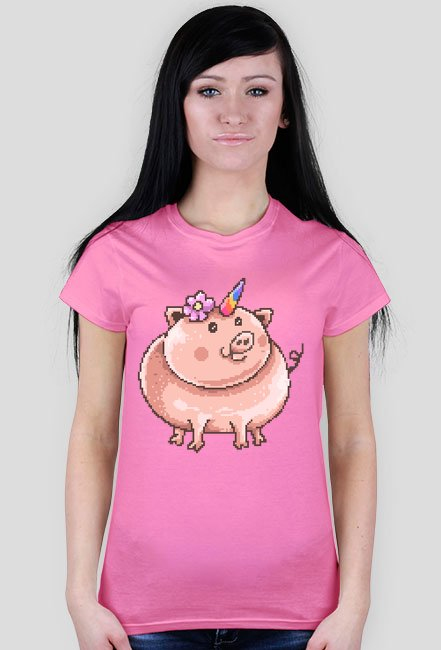 Koszulka z nadrukiem stylizowanym na 8bitowej grafice przedstawiającej świnkę jednorożca. Świetna na prezent dla kogoś bliskiego ;)