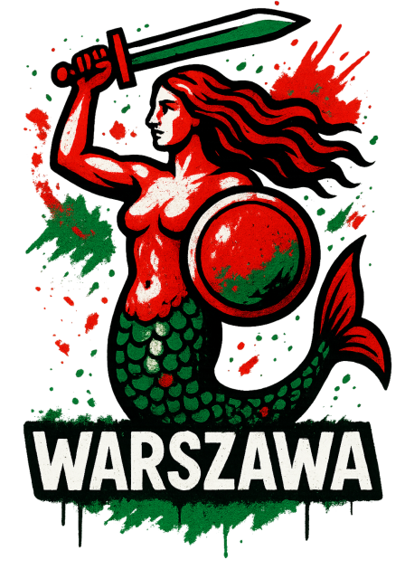 Wyrazisty nadruk w kontrastowych kolorach wyróżnia się na tle bieli, nadając całości charakteru w stylu streetwear. To koszulka, która łączy wygodę z mocnym przekazem i niepowtarzalnym warszawskim klimatem.