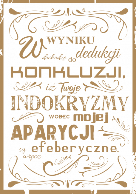 W wyniku dedukcji dochodze do konkluzji, iż twoje indokryzmy wobec mojej aparycji są wrecz efemeryczne... Całkowicie to rozumiem...