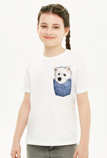 Dziecięca Koszulka Westie W Kieszeni West Highland White Terrier SKU: koszulka-dziewczynka-new_rss2zsmz_4130855