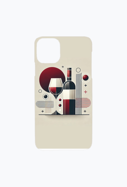 Stylowe etui do iPhone 11 z eleganckim, nowoczesnym motywem wina. Grafika przedstawia minimalistyczną kompozycję butelki wina i kieliszka, utrzymaną w czystym, geometrycznym stylu na jednolitym tle. Wykorzystanie kontrastujących kolorów – głębokiej czerwieni, czerni oraz subtelnych odcieni bieli – nadaje etui elegancji i wyrafinowania. Całość zaprojektowana z myślą o miłośnikach wina oraz osobach ceniących prosty, nowoczesny design.